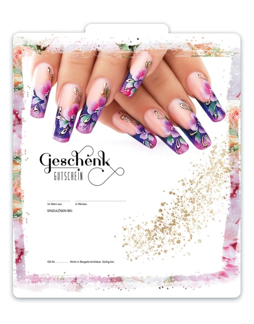 Begeistern auch Sie Ihre Kunden mit unseren hochwertigen, professionell gestalteten Geschenkgutscheinen für Fingernagelstudios.