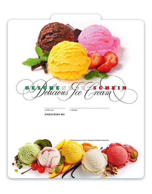 Begeistern auch Sie Ihre Kunden mit unseren hochwertigen, professionell gestalteten Gutscheinen für Eisdielen.