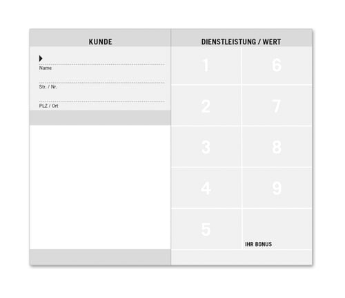 Kundenkarte Kundenkarten Kundenbindung Bonuskarte Treuepass K516 Friseurgutschein Friseurgeschäft Friseursalon Friseur hairstyling Frisör Coiffeur Haarstudio Coiffure Coifför