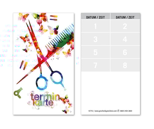 Begeistern auch Sie Ihre Kunden mit unseren hochwertigen, professionell gestalteten Terminkarten für Friseure.