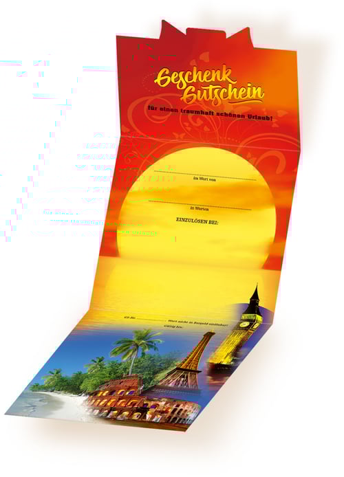 Gutscheinkarte Geschenkgutscheine geschenkgutscheine.com bestellen Klappkarten hauer R101 Reisebüro Reisebürogutschein