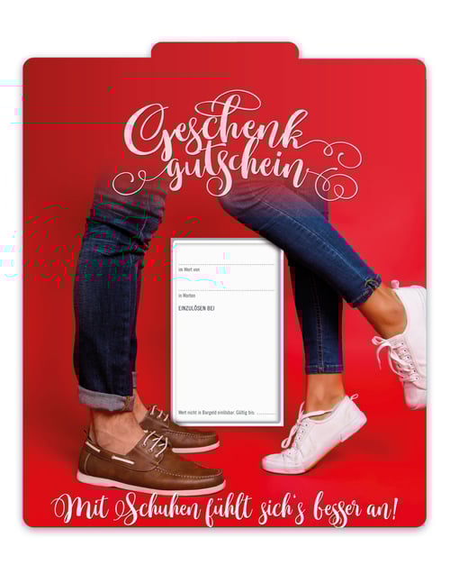 Gutscheinkarte Geschenkgutscheine geschenkgutscheine.com bestellen Klappkarten pos-hauer SH235 Schuhe Schuhgeschäft Schuhwaren Schuhhandel Lederwaren Schuhmacher Schuhgutschein