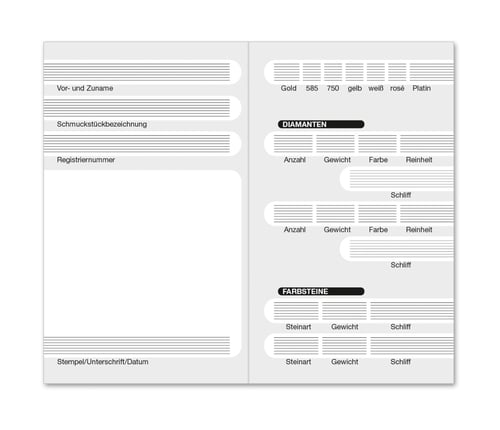 Schmuck-Zertifikat Schmuckzertifikat Schmuckcertificate SC557 Schmuck Jewelen Juwelier Gold und Silberschmiede