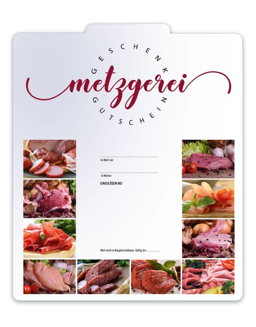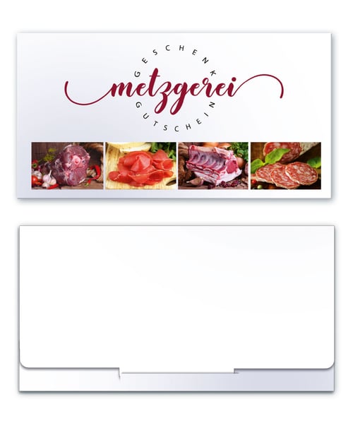 Gutschein bestellen Faltgutschein blanko Gutscheine Card Geschenkgutschein Vorlage Geschenkgutschein-shop M230 Metzgerei Fleischer Fleischhauerei Fleisch und Wurst Fleisch und Wurstwaren
