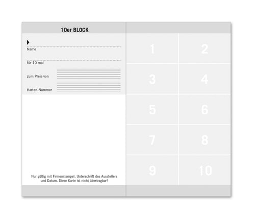 Punktekarte 10er-Block Abokarte Kundenbindung FI400 Fitness Fitnesscenter Fitnessstudio Gymnastikstudio