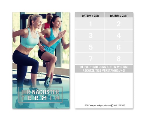 Terminkarte Terminkarten Terminverlust Terminblock Terminblöcke Terminzettel FI705 Fitness Fitnesscenter Fitnessstudio Gymnastikstudio