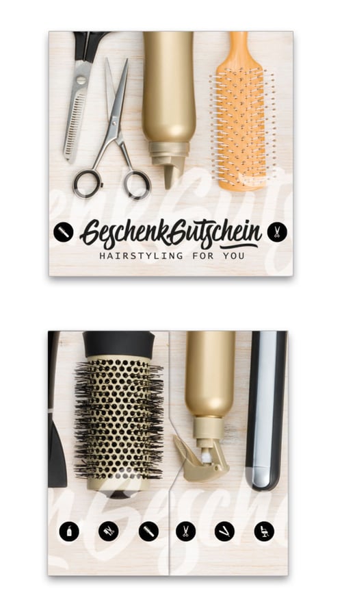 Gutscheinkarte Geschenkgutscheine geschenkgutscheine.com bestellen Klappkarten hauer K733 Friseurgutschein Friseurgeschäft Friseursalon Friseur hairstyling Frisör Coiffeur Haarstudio Coiffure Coifför