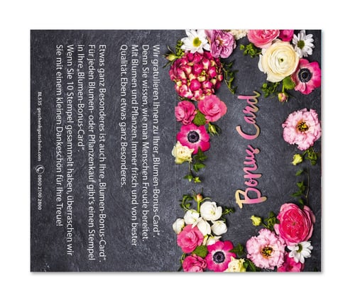 Kundenkarte Kundenkarten Bonus-Pass Bonus-Pässe Treuepässe BL535 Blumenhändler Blumenhandlung Blumen Blumengeschäft Blumengutschein