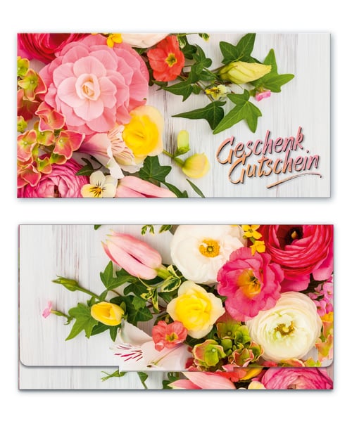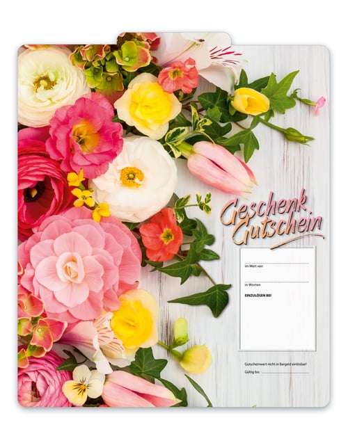 Gutschein bestellen Faltgutschein blanko Gutscheine Card Geschenkgutschein Vorlage Geschenkgutschein-shop BL251 für Unternehmen Firma Firmen Kunden Druckerei Werbemittel Büroartikel Blumenhändler Blumenhandlung Blumen Blumengeschäft Blumengutschein