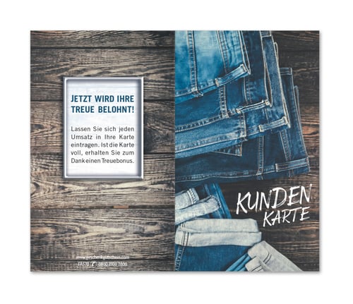 Kunden-Karte Kunden-Karten Kundencard Bonuskarten Kundenkarten FA570 Mode Modegeschäft Modeboutique Boutique Fashion Jeans Modegutschein Bekleidung Textilwaren