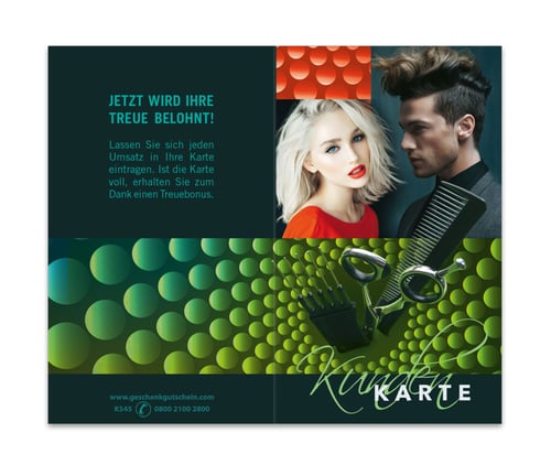 Kundenkarte Kundenkarten Kunden-Cards Kundenbindung Treuekarte Rabattsystem K545 Friseurgutschein Friseurgeschäft Friseursalon Friseur hairstyling Frisör Coiffeur Haarstudio Coiffure Coifför