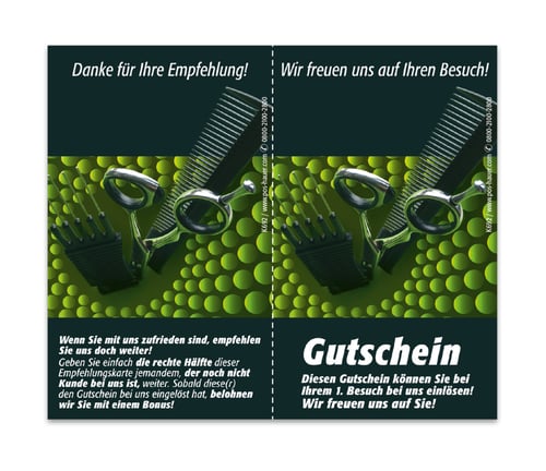 Weiterempfehlung Empfehlungskarte Kundengewinnung K692 Friseurgutschein Friseurgeschäft Friseursalon Friseur hairstyling Frisör Coiffeur Haarstudio Coiffure Coifför