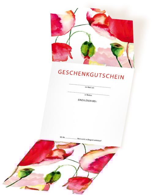 Geschenkgutschein zum Falten, wird mit einer Stecklasche verschlossen.