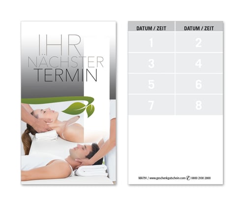 Nächster Termin Terminkärtchen Terminblöcke Terminkarte Termintreue MA791 Massage Kosmetik Massagepraxis Massagegutschein Wellness Spa Kosmetikinstitut Naturheilkunde Physiotherapie