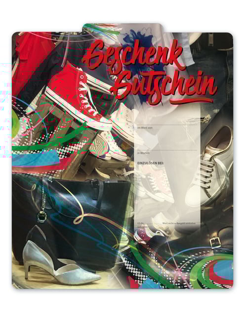 Gutschein Geschenkgutscheine Geschenk Gutscheine für Kunden Druckerei blanko bestellen Karten hauer SH232 Schuhe Schuhgeschäft Schuhwaren Schuhhandel Lederwaren Schuhmacher Schuhgutschein