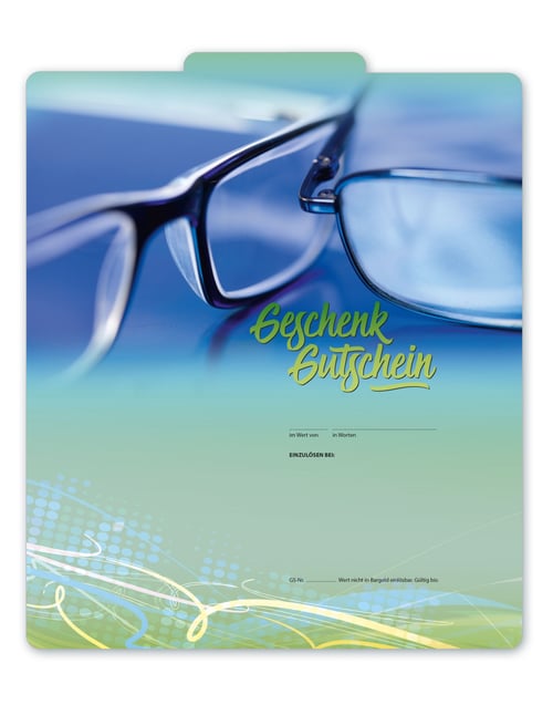 Gutschein bestellen Faltgutschein blanko Gutscheine Card Geschenkgutschein Vorlage Geschenkgutschein-shop OP252 Optiker Brillen Optik