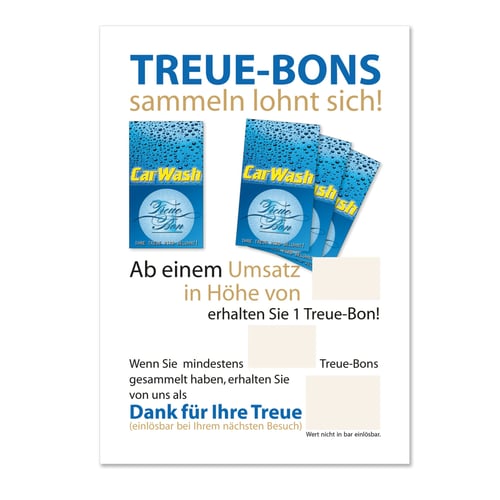 Treue-Bon / 3 Poster A4 / Autopflege Autoaufbereitung Autowäsche