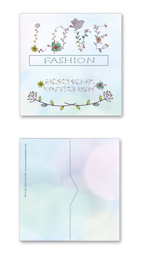 Gutscheinkarte Geschenkgutscheine geschenkgutscheine.com bestellen Klappkarten hauer FA715 Mode Modegeschäft diverse Modeboutique Boutique Fashion Jeans Modegutschein Bekleidung Textilwaren