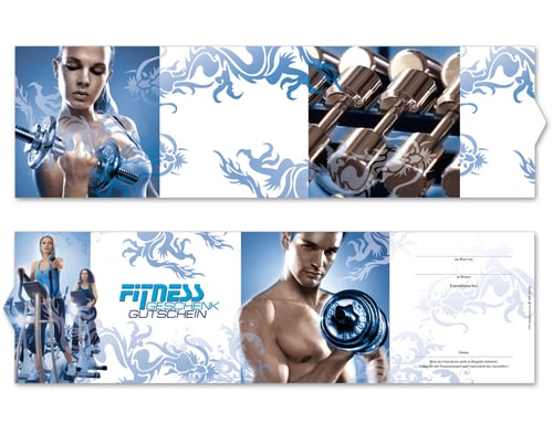 Gutschein bestellen Faltgutschein blanko Gutscheine Card Geschenkgutschein Vorlage Geschenkgutschein-shop FI701 Fitness Fitnesscenter Fitnessstudio Gymnastikstudio