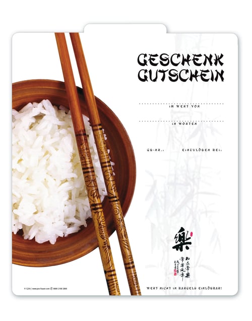 Begeistern auch Sie Ihre Kunden mit unseren hochwertigen, professionell gestalteten Geschenkgutscheinen für Chinarestaurang.