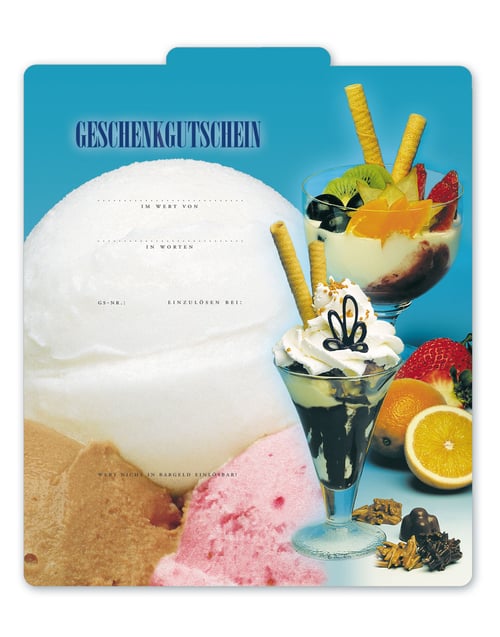 Begeistern auch Sie Ihre Kunden mit unseren hochwertigen, professionell gestalteten Geschenkgutscheinen für Eiscafés.