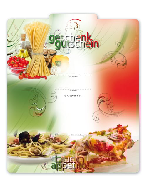 Multicolor Geschenkgutschein Gutscheinvordrucke Gutschein bestellen pos G235 Italiener italienische Restaurants Pizzeria Pizzaria italienisches Restaurant