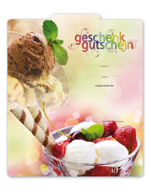 Gutschein Geschenkgutscheine Geschenk Gutscheine für Kunden Druckerei blanko bestellen Karten hauer G236 Eisdiele Eiscafé