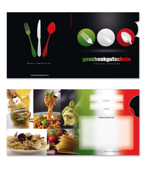 Gutscheinkarte Geschenkgutscheine geschenkgutscheine.com bestellen Klappkarten hauer G407 Italiener italienische Restaurants Pizzeria Pizzaria italienisches Restaurant