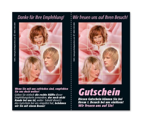 Weiterempfehlung Empfehlungskarte Kundengewinnung K683 Friseurgutschein Friseurgeschäft Friseursalon Friseur hairstyling Frisör Coiffeur Haarstudio Coiffure Coifför