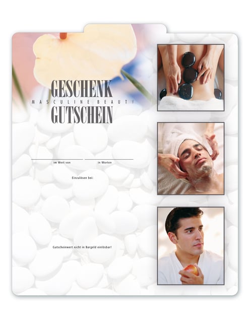 Gutscheinkarte Geschenkgutscheine geschenkgutscheine.com bestellen Klappkarten pos-hauer KS210 Kosmetikstudio Kosmetiksalon Kosmetik Kosmetikgutschein Wellness für Mann Männer Wellnessgutschein