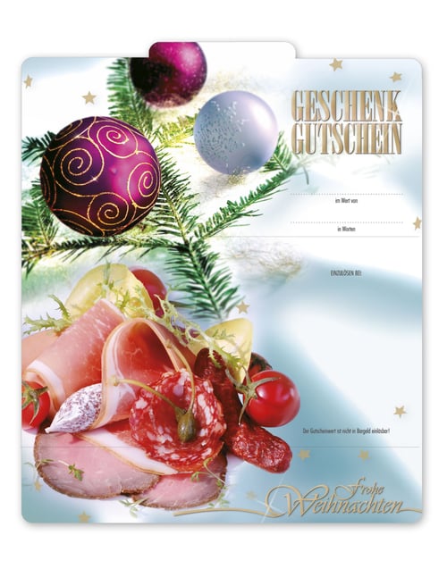 Geschenkgutschein Vorlage Geschenkgutschein-shop M200 Metzgerei Fleischer Fleischhauerei Fleisch und Wurst Fleisch und Wurstwaren für Weihnachten Weihnachtsfest xmas Weihnachtsmotiv Weihnachtsgutschein