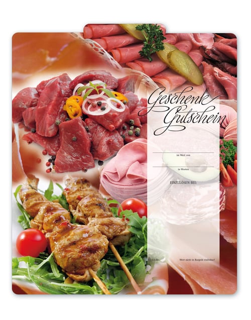 Multicolor Geschenkgutschein Gutscheinvordrucke Gutschein bestellen pos M216 Metzgerei Fleischer Fleischhauerei Fleisch und Wurst Fleisch und Wurstwaren