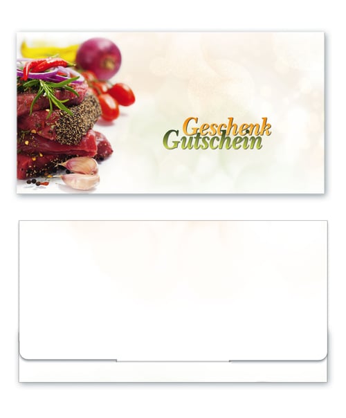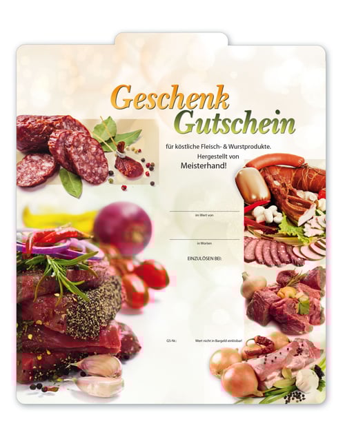Gutschein bestellen Faltgutschein blanko Gutscheine Card Geschenkgutschein Vorlage Geschenkgutschein-shop M223 Metzgerei Fleischer Fleischhauerei Fleisch und Wurst Fleisch und Wurstwaren