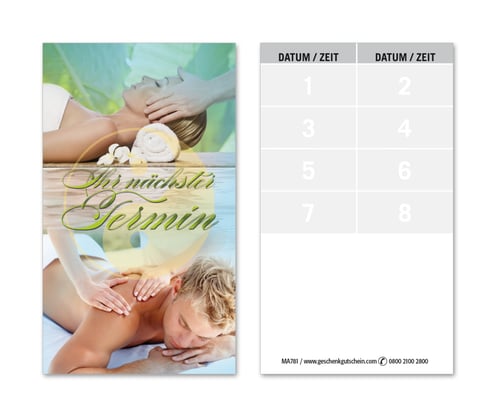 Terminkarten / Massage Wellness Spa Kosmetik Naturheilkunde Physiotherapie