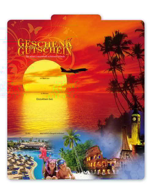 Gutschein Geschenkgutscheine Geschenk Gutscheine für Kunden Druckerei blanko bestellen Karten hauer R216 Reisebüro Reisebürogutschein