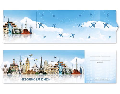 Gutschein bestellen Faltgutschein blanko Gutscheine Card Geschenkgutschein Vorlage Geschenkgutschein-shop R704 Reisebüro Reisebürogutschein