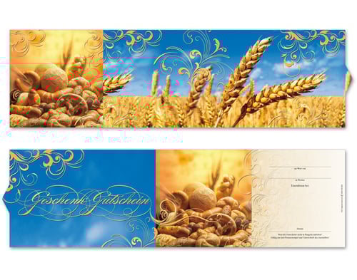 Geschenkgutschein zum Falten, wird mit einer Stecklasche verschlossen.