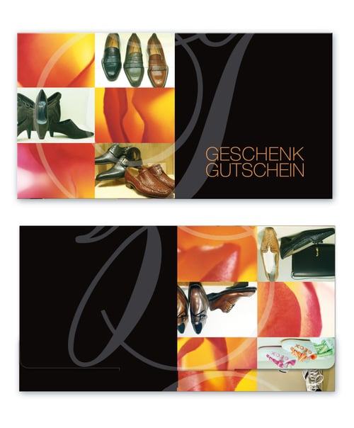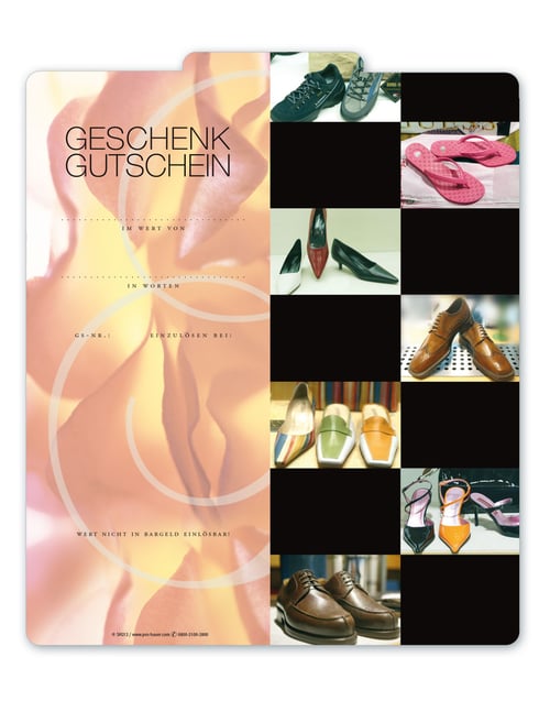 Gutschein bestellen Faltgutschein blanko Gutscheine Card Geschenkgutschein Vorlage Geschenkgutschein-shop SH212 Schuhe Schuhgeschäft Schuhwaren Schuhhandel Lederwaren Schuhmacher Schuhgutschein
