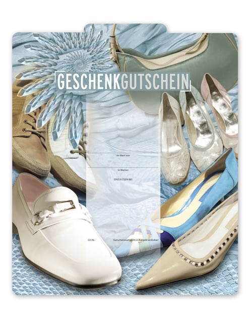 Gutscheinkarte Geschenkgutscheine geschenkgutscheine.com bestellen Klappkarten pos-hauer SH221 Schuhe Schuhgeschäft Schuhwaren Schuhhandel Lederwaren Schuhmacher Schuhgutschein