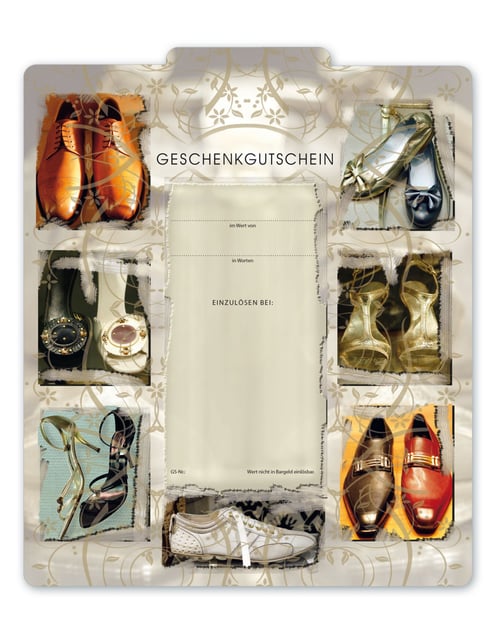 Multicolor Geschenkgutschein Gutscheinvordrucke Gutschein bestellen pos SH222 Schuhe Schuhgeschäft Schuhwaren Schuhhandel Lederwaren Schuhmacher Schuhgutschein