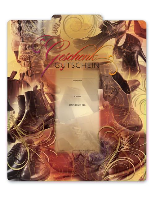 Gutschein bestellen Faltgutschein blanko Gutscheine Card Geschenkgutschein Vorlage Geschenkgutschein-shop SH225 Schuhe Schuhgeschäft Schuhwaren Schuhhandel Lederwaren Schuhmacher Schuhgutschein