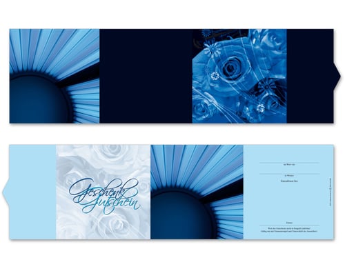 Geschenkgutschein zum Falten, wird mit einer Stecklasche verschlossen.
