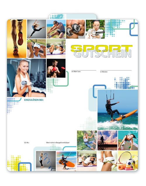 Gutschein bestellen Faltgutschein blanko Gutscheine Card Geschenkgutschein Vorlage Geschenkgutschein-shop SP236 Sport Sportartikel Sportartikelhandel Sportgutschein
