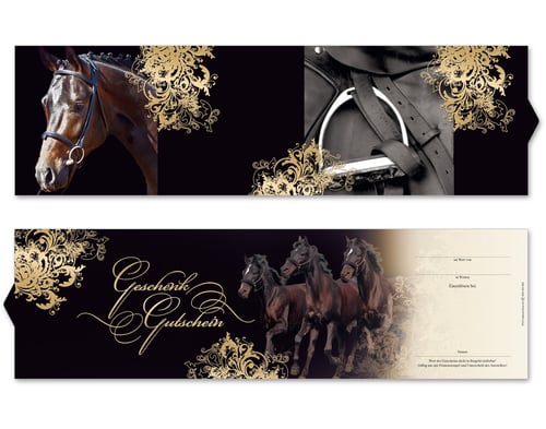 Gutschein Geschenkgutscheine Geschenk Gutscheine für Kunden Druckerei blanko bestellen Karten SP705 Reitsportgeschäft Reitstall Reitsportgeschäft Reiten Reitstunden Reitstundengutschein