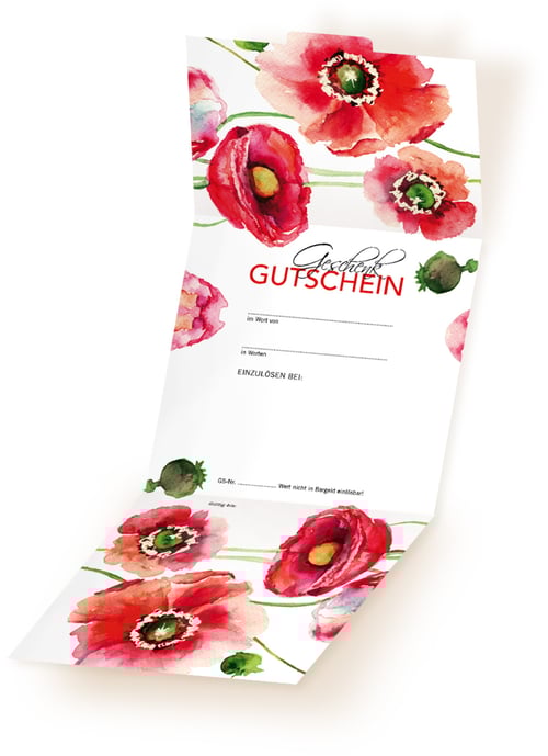 Geschenkgutschein zum Falten, wird mit einer Stecklasche verschlossen.