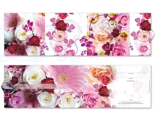 Geschenkgutschein zum Falten, wird mit einer Stecklasche verschlossen.