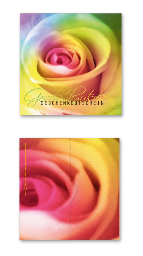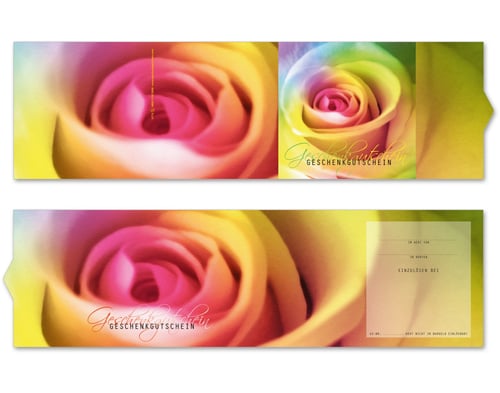 Geschenkgutschein zum Falten, wird mit einer Stecklasche verschlossen.