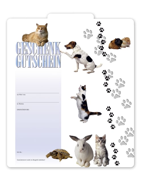 Multicolor Geschenkgutschein Gutscheinvordrucke Gutschein bestellen pos ZH210 Tierbedarf Zoohandel Zoohandlung Tiernahrung Tierfutter