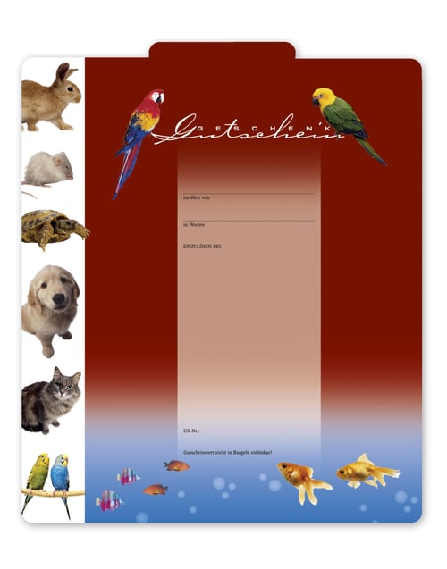 Gutschein Geschenkgutscheine Geschenk Gutscheine für Kunden Druckerei blanko bestellen Karten hauer ZH220 Tierbedarf Zoohandel Zoohandlung Tiernahrung Tierfutter