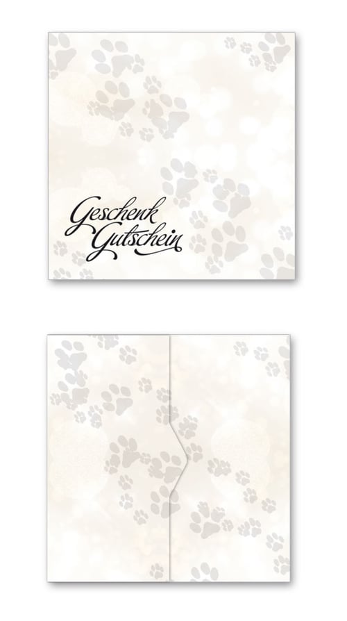 Geschenkgutschein zum Falten, wird mit einer Stecklasche verschlossen.